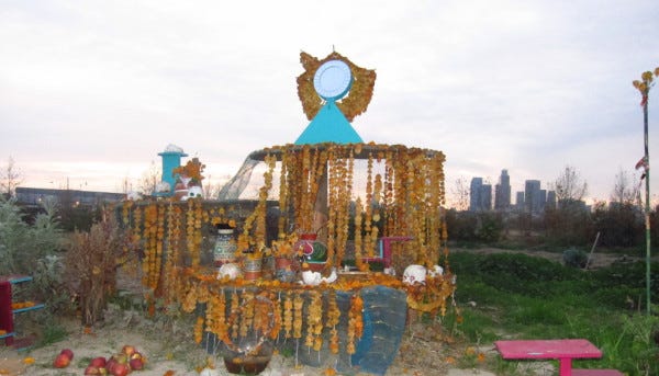 An image of an Ofrenda altar to the ancestors by Olivia with eimers and the Metabolic Studio, downtown LA, or Yaanga, approx November 1, 2010