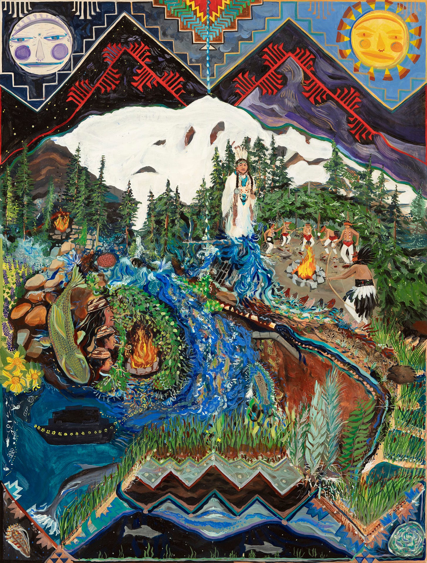 The ancestors often whispered to me what was supposed to come next; and I was a willing channel for this incantation of native lands and waterways returning to native stewardship. Sun and moon deities are frequent guides in my work; imprinted sometime in childhood and Andean ancestry.